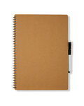 - Includes 70 lined sheets of 100% post consumer recycled paper with an elastic pen loop and matching recycled black ink pen (natural barrel with matching color plastic accents)