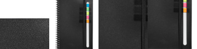 - Right side features 70 lined sheets of 100% pre-consumer recycled paper