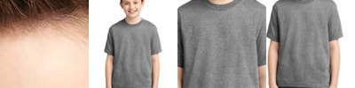 4.5 oz., 100% combed ringspun cotton jersey; Topstitched ribbed collar; Taped neck with EasyTear™ label; Double-needle hemmed sleeves and bottom; White is sewn with 100% cotton thread; Heather is 93% cotton, 7% polyester;