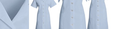 - Fashion collar with three button placket and embossed metal buttons with plastic rims