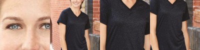 - 6.5 oz., 50/46/4 polyester (6.25% recycled)/cotton (6.25% organic)/rayon, 30 singles