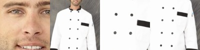 - Solid black trim on collar, cuffs and chest pocket