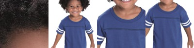 - Contrast color raglan sleeves, collar, "V", and waistband