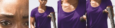 - Double-needle coverstitched neck, cuffs and sleeves