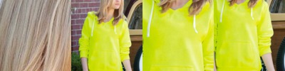 - Contrast color hood lining and drawcord