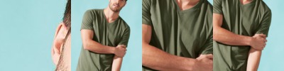 - 5.3 oz., 95/5 cotton/spandex jersey knit, 30 singles