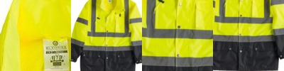 - Self-fabric collar with 8" locking zipper
