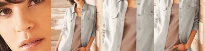 - Two pearlized buttons on adjustable cuff with button-through sleeve placket